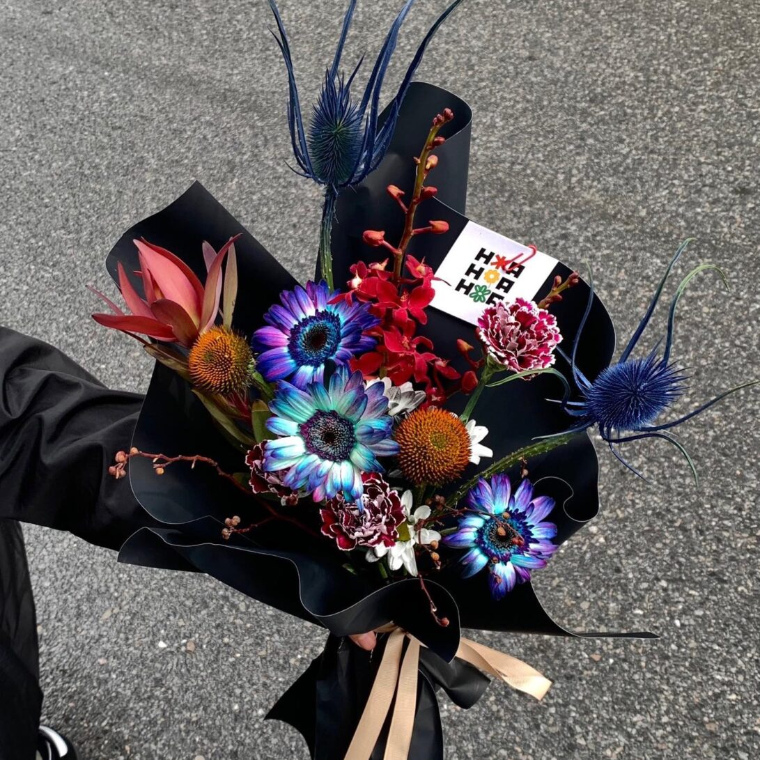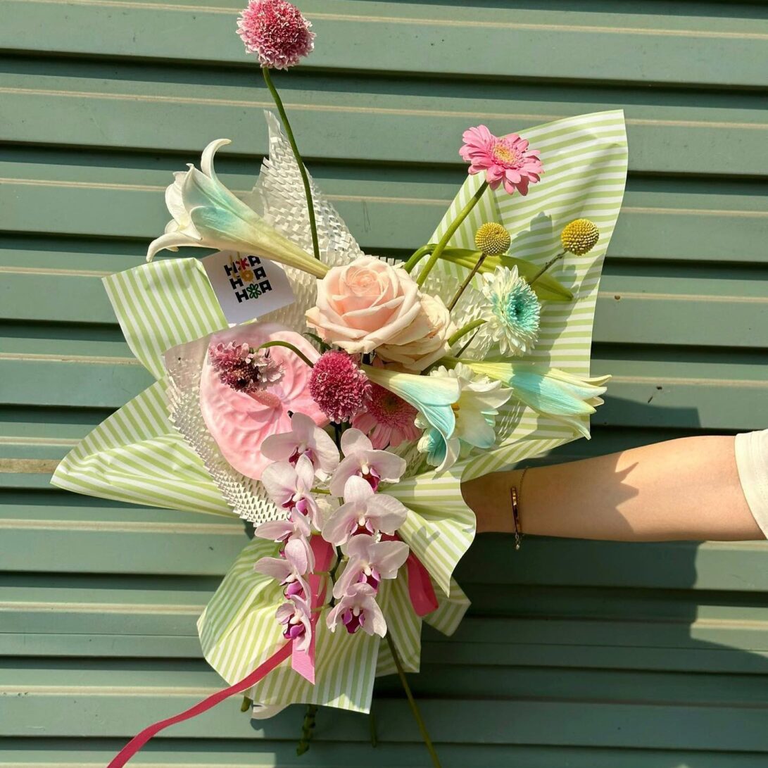 “Quyện” là một bản giao hưởng màu sắc, nơi những cánh hoa hòa quyện vào nhau. Mỗi bó hoa trong “Quyện” đều là một tác phẩm nghệ thuật, thể hiện sự tinh tế trong việc kết hợp màu sắc và loài hoa.