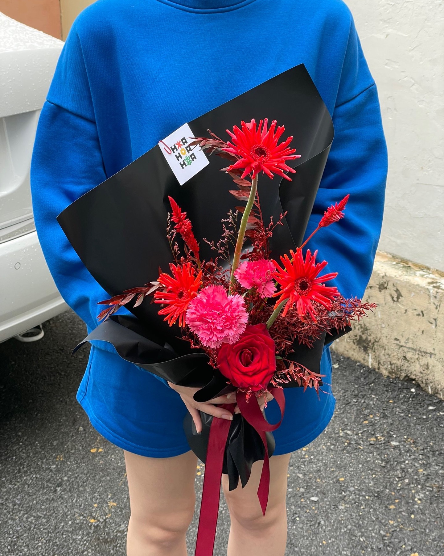 Hình dáng: Bó hoa tròn đầy, các cánh hoa xếp khít nhau, tạo cảm giác nồng nàn.