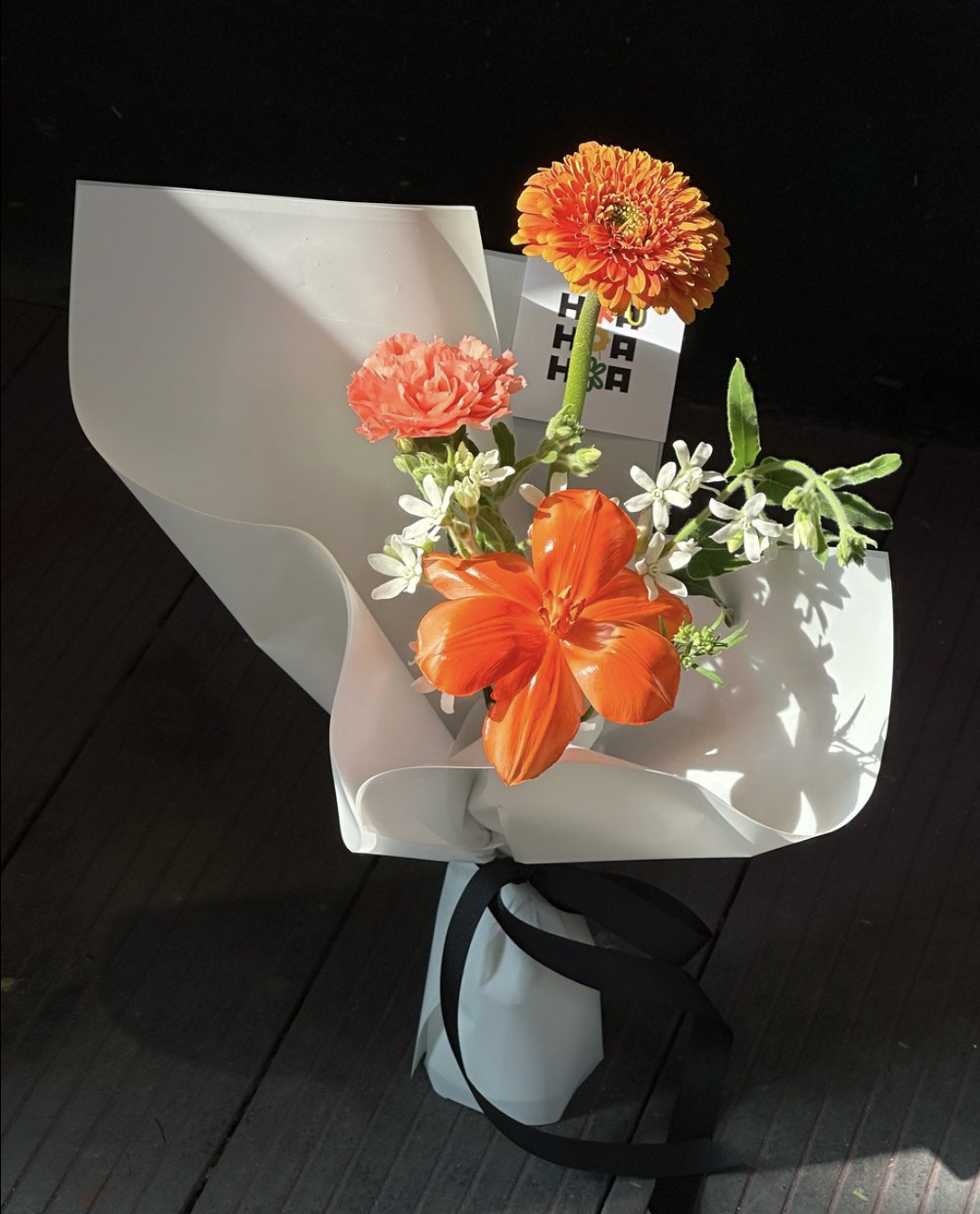 Bó hoa cẩm chướng cam nhỏ xinh tựa như ánh nắng dịu dàng của buổi sớm mai, mang đến sự ấm áp và lãng mạn. Những bông hoa nhỏ nhắn, rực rỡ hòa quyện cùng sắc xanh tươi mát, tạo nên một món quà ngọt ngào, gửi gắm những tình cảm chân thành và yêu thương đến người nhận.